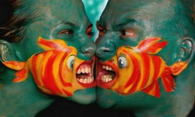 Enfim... retomando o pensamento inicial de que o nosso corpo é uma arte, alguns artistas vão mais além e usaram mais que apenas o corpo, usaram cores, formas, e imagens...